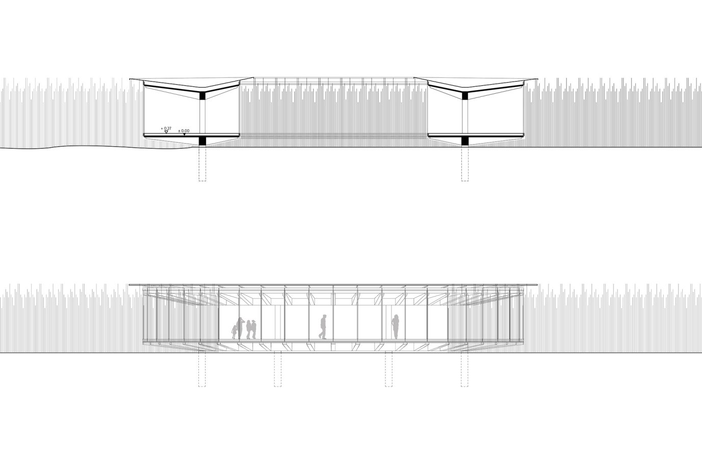 Der Entwurf für eine Bibliothek am Rand des Schilfgürtels ist ein Ort der Information und der Kontemplation. In dem kreisrunden Bau kann man sich über die Welt der Pflanzen und Tiere informieren, er bietet aber auch die Möglichkeit des Rückzuges inmitten der Natur. Die sehr präzise Setzung des klaren, einfachen Baukörpers im Schilf lässt ganz unterschiedliche räumliche Beziehungen zwischen Innenraum und Aussenraum entstehen: offene und geschlossene, solche mit Weitsicht und solche mit Blick direkt in den Schilfwald. Grösse, Form und Konstruktion sind sehr stimmig aus der Grundidee und den Bedingungen des Ortes entwickelt. Der Ausdruck des Gebäudes ist klar und elegant.