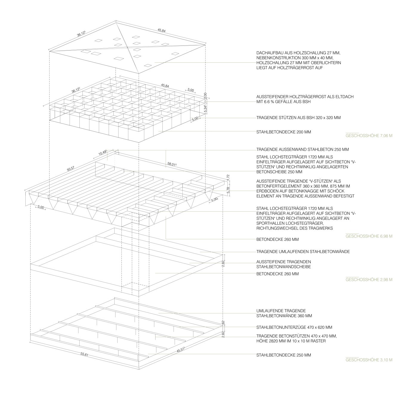Der konstruktive Entwurf versucht eine Verbindung von Entwerfen und Konstruieren in einem integrativen Sinne aufzuzeigen, dies bedeutet einen Entwurfsvorgang, der bereits wichtige Themen der Konstruktion, Fügung und Materialisierung von Anfang an mitbedenkt und als gestaltprägende Faktoren miteinbezieht. So werden städtebauliche Fragen oder Themen der typologischen Ordnung immer auch von der konstruktiven und technischen Anforderung her mitdiskutiert. Über den Zeitraum von einem Jahr können so sehr intensive, alle wesentlichen architektonischen Parameter diskutiert und entschieden werden, um am Ende idealerweise ein «baubares» Haus zu planen und darzustellen. Im ersten Semester werden die grundsätzlichen Entscheidungen bezüglich Städtebau, Gebäudekunde und architektonischer Haltung geklärt und als Thesen aufgestellt, während im zweiten Semester eine gründliche Durcharbeitung aller wesentlichen Komponenten zu einer möglichst konsistenten, realitätsnahen Darstellung führt, dies geschieht von Anfang an mit Modellen und Zeichnungen, die den Entwurfsansatz verdeutlichen und endet in großmaßstäblichen Abgabemodellen, Details und atmosphärischen Darstellungen, die den architektonischen Ausdruck und seine Fügung wiedergeben.