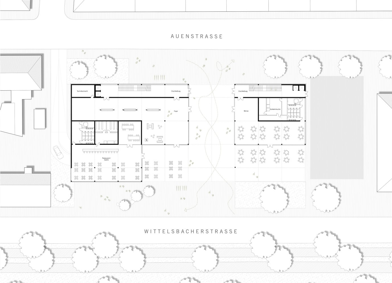 Zwei große städtische Grundstücke in München direkt an der Isar-Tangente, angrenzende an die Wittelsbacherschule werden mit einem neuen urbanen Multi-Use-Sport-/ Schul-und Kinderzentrum bebaut. Das Zentrum soll durch Kinder/ Schüler, Vereine aber auch die Bewohner des angrenzdenden Viertel und der näheren Umgebung genutzt werden können. Gleichzeitig soll die Rolle der entstehenden Außenräume für das Glockenbachviertel mit bedacht werden. Funktionale Kernelemente sind eine Schwimmhalle, eine Einfach- oder Zweifach-Sporthalle, ein Kindergarten sowie Erweiterungsräume für die Schule.