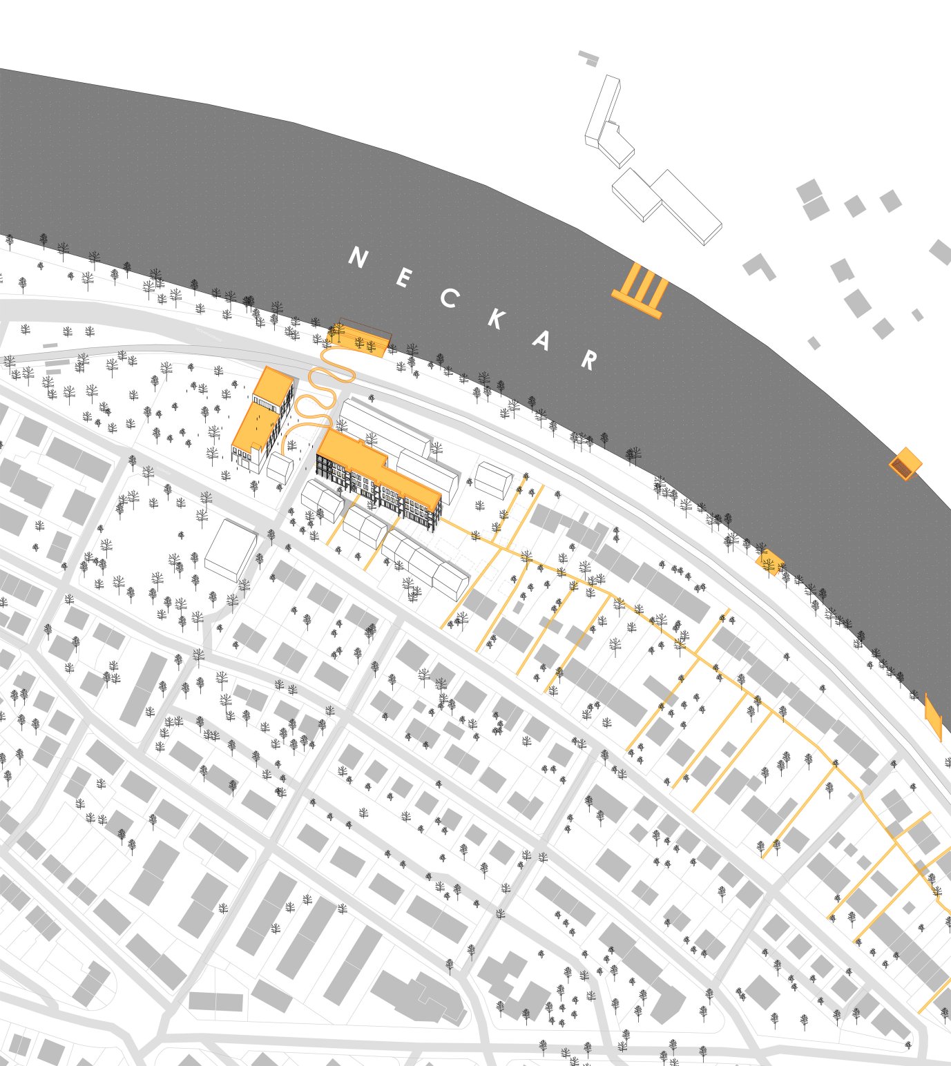 Bei der Voruntersuchung zur Neckarnachbarschaft Münster stand die Beziehung zwischen dem Stadtteil und dem Fluss im Vordergrund. Dabei wurden unterschiedliche Eingriffsmöglichkeiten für eine Öffnung des Quartiers zum Neckar untersucht und dargestellt: von inkrementell, nachbarschaftlich organisierten Wegrechten bis zu urbanen Projekten am Ufer.