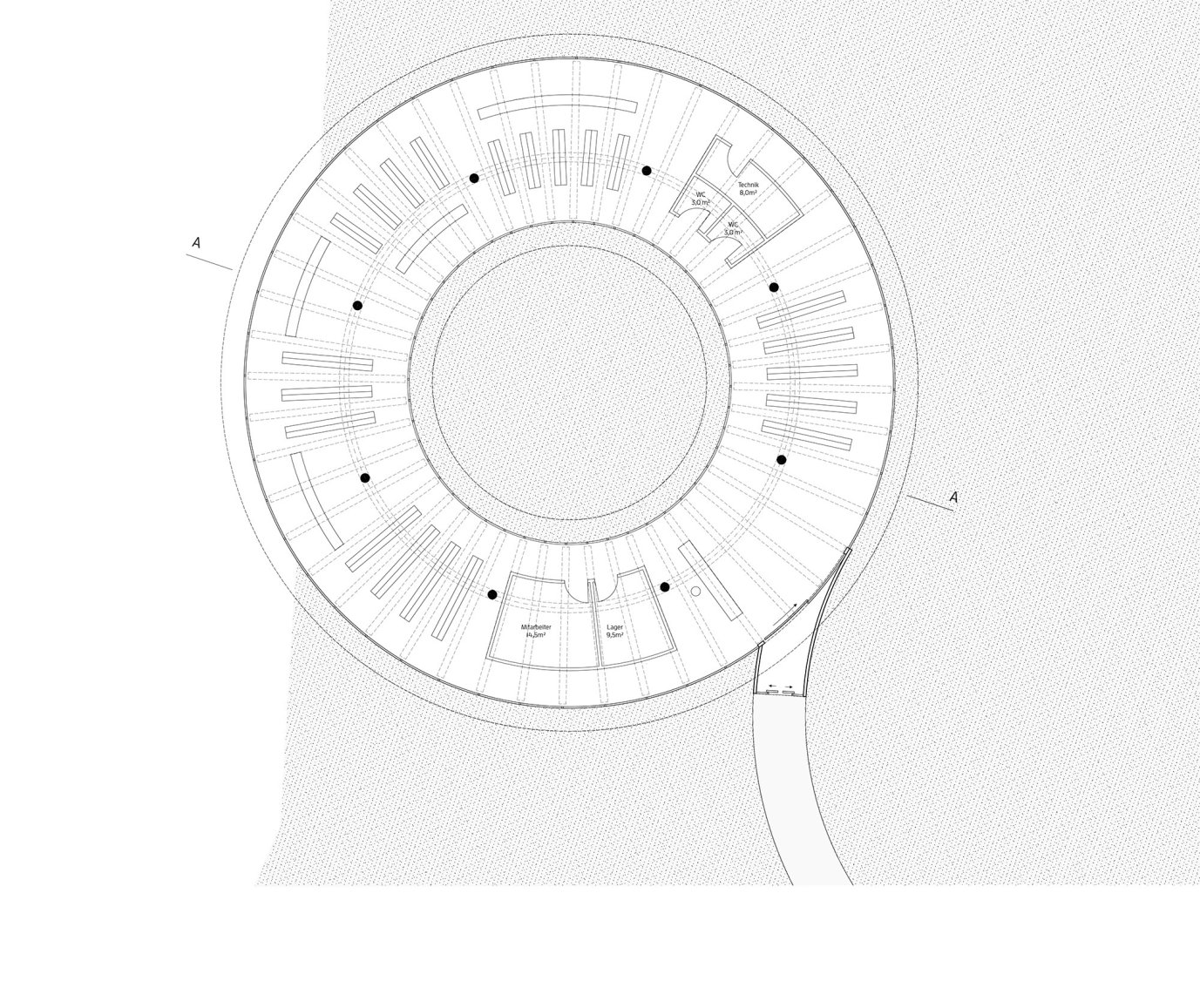 Der Entwurf für eine Bibliothek am Rand des Schilfgürtels ist ein Ort der Information und der Kontemplation. In dem kreisrunden Bau kann man sich über die Welt der Pflanzen und Tiere informieren, er bietet aber auch die Möglichkeit des Rückzuges inmitten der Natur. Die sehr präzise Setzung des klaren, einfachen Baukörpers im Schilf lässt ganz unterschiedliche räumliche Beziehungen zwischen Innenraum und Aussenraum entstehen: offene und geschlossene, solche mit Weitsicht und solche mit Blick direkt in den Schilfwald. Grösse, Form und Konstruktion sind sehr stimmig aus der Grundidee und den Bedingungen des Ortes entwickelt. Der Ausdruck des Gebäudes ist klar und elegant.