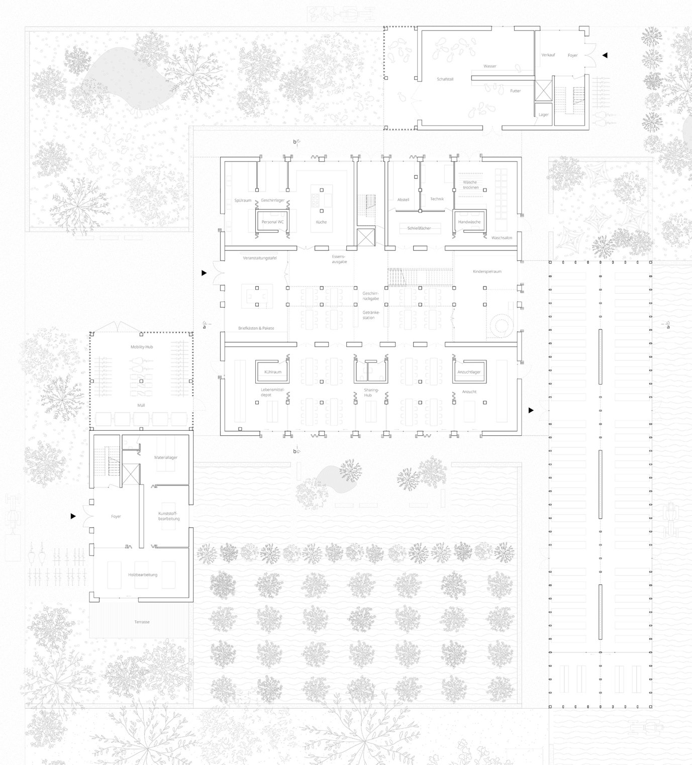 Civitas Rustica ist ein zukunftsorientiertes Wohn- und Landwirtschaftskonzept, das von der römischen Villa Rustica inspiriert ist, mit einem zentralen Wohnhaus und ergänzenden Nebengebäuden für Produktion und Gemeinschaft. In einem waldnahen Gebiet Rummelsburgs verbinden sich Wohnen, Landwirtschaft und gemeinschaftliches Leben nach Permakulturprinzipien. Durch geteilte Räume und Funktionen werden Ressourcen, Flächen und CO₂-Emissionen deutlich reduziert. Die Gebäude bestehen aus regionalen, natürlichen Materialien wie Holz aus Eberswalde und Kalkstein aus Rüdersdorf. Civitas Rustica zeigt, wie Stadt, Landwirtschaft und Gemeinschaft nachhaltig ineinandergreifen können.