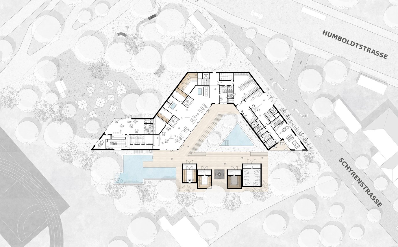 In München soll als Ganz-Jahresangebot und damit ergänzender Baustein am bestehenden Münchner Schyrenbad (bestehendes Freibad) ein Erholungsort in Form eines Wellness- und Spa-Centers mit externem Biergarten errichtet werden. Schwerpunkt war die Ausformung attraktiver Innenräume, Erlebnisräume – die Entwicklung eines Spa-Konzepts, das erfolgversprechend ist, eine USP / Alleinstellungsmerkmal soll entwickelt werden für den Erholungsort -die Wellness/ Spa-Anlage – dabei spielt die Gestaltung der Außenbereiche eine gleichwertige Rolle.